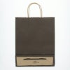 商品の特徴:クラフト紙の全面にこげ茶印刷を施し、色を落ち難くする為のニスを上から引いています。A4サイズの収納に適した規格です。●手紐:丸紐未晒