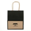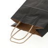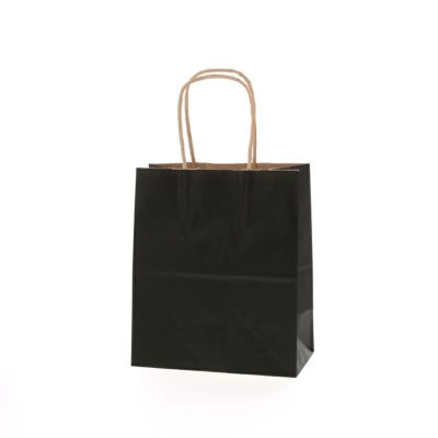 商品の特徴:クラフト紙に黒ベタを印刷した手提げ紙袋です。色落ちを緩和させるために、上からニスを塗布しています。コンパクトな人気のサイズで、雑貨・文具・コスメ・菓子などに。●手紐:丸紐未晒