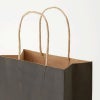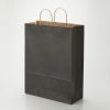 商品の特徴:クラフト紙に黒ベタを印刷した手提げ紙袋です。色落ちを緩和させるために、上からニスを塗布しています。縦型で、25チャームバッグの中でも丈が最大の大型定番サイズです。●手紐:丸紐未晒