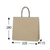 商品の特徴:樹脂製の接着剤で手紐を取り付けた手提げ紙袋です。紐の結び目がなくすっきりし、物の出し入れがスムースで、ストックする際にかさばらないメリットがあります。通常段ボールなどに利用されるライナー紙を使用し、ナチュラルな風合いに仕上げました。厚口原紙のため一般的な紙袋より丈夫です。定番サイズ「3才」のショート丈規格。●手紐:丸紐茶3本撚り