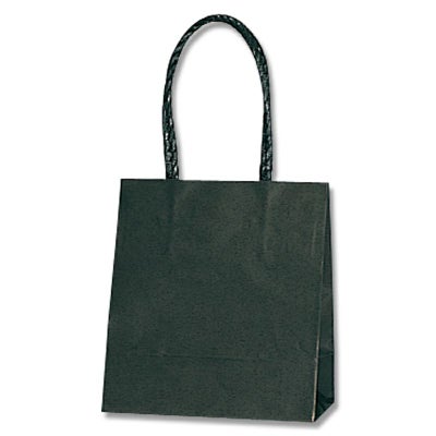 商品の特徴:樹脂製の接着剤で手紐を取り付けた手提げ紙袋です。紐の結び目がなくすっきりし、物の出し入れがスムースで、ストックする際にかさばらないメリットがあります。コンパクトな人気サイズで、小物雑貨やちょっとしたギフトに。シックな黒無地。●手紐:PP紐黒