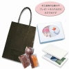 商品の特徴:樹脂製の接着剤で手紐を取り付けた手提げ紙袋です。紐の結び目がなくすっきりし、物の出し入れがスムースで、ストックする際にかさばらないメリットがあります。コンパクトな人気サイズで、小物雑貨やちょっとしたギフトに。シックな黒無地。●手紐:PP紐黒