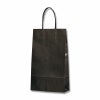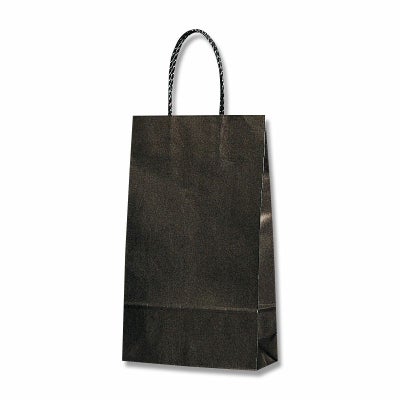 商品の特徴:樹脂製の接着剤で手紐を取り付けた手提げ紙袋です。紐の結び目がなくすっきりし、物の出し入れがスムースで、ストックする際にかさばらないメリットがあります。A4縦対応の定番中型サイズ。シックな黒無地。●手紐:PP紐黒