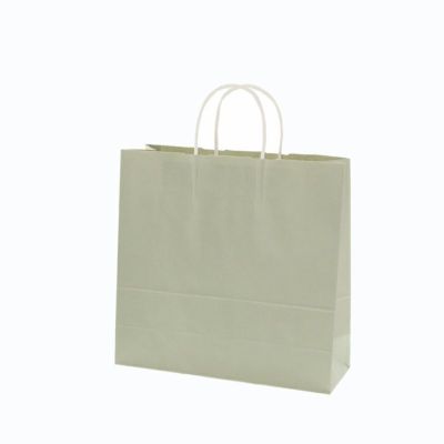 商品の特徴:オーソドックスなライトグレーの手提げ袋です。プリントではなく、グレー色の原紙を使用しています。幅と高さがほぼ正方形のオールマイティモデル。●手紐:丸紐白●入数:50枚