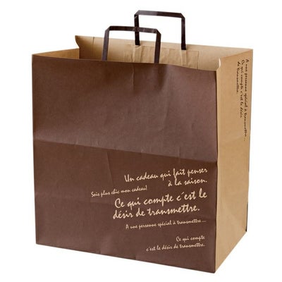 商品の特徴:人気のBKFシリーズからペーパーバッグができました。クラフト素材でナチュラル感を出しつつ、落ち着いたブラウンの刷色で全体の雰囲気を引き締めています。