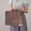 商品の特徴:人気のBKFシリーズからペーパーバッグができました。クラフト素材でナチュラル感を出しつつ、落ち着いたブラウンの刷色で全体の雰囲気を引き締めています。