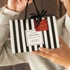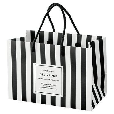 商品の特徴:ストライプが印象的なフィエルテシリーズから、ミニペーパーバッグが登場。シャープな印象のモノトーンのストライプとマットな質感、さりげない黒箔がスタイリッシュなハンドル付き紙袋です。バレンタインギフトに添えるプレゼント用の袋や、時計やアクセサリーなど少し高価なギフト用の持ち帰り用の紙袋にもおすすめ。スクエア型のショコラボックスにピッタリのM2Pサイズ、少し大きめのM1Pサイズの、2サイズ展開です。