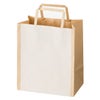 商品の特徴:クラフトにホワイトの細いストライプがデザインされたシンプルなペーパーバッグです。どんな業種の方にも使いやすいアイテムです。