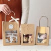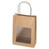 商品の特徴:商品を入れるだけでギフトが完成する、シンプルな無地の窓付バッグです。ピンと立ったハンドルが手に取りやすく、店頭に並べてそのままお持ち帰りいただけます。前面に窓がついているので、中身を見せたいギフトにおすすめです。