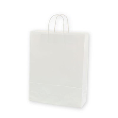 商品の特徴:もっとも汎用性の高い、プレーンな白無地の手提げ袋です。縦長のスタンダードサイズ。●手紐:丸紐白