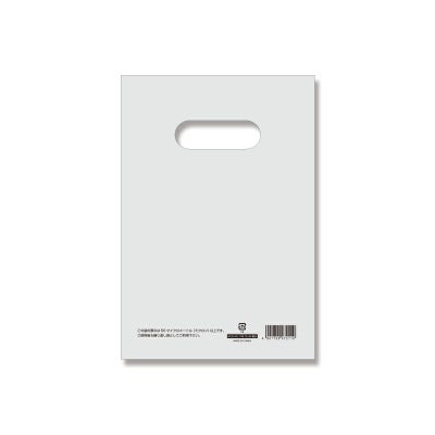 商品の特徴:フィルム材質が厚み0.05mmの手抜きポリ袋です。「プラスチック製買物袋有料化制度」の対象外とすることが可能です。本体1枚1枚に厚みのある丈夫な袋であることを明記すると共に、買い物客に有償でお渡しすることも考慮してパッケージとは異なるJANコードを印字してあります。HDポリエチレン製で、パリッとしたハードタイプです。B6サイズ対応で、文庫本やCDなどに合うサイズ感です。※穴から下の高さは多少前後する場合があります。【印字内容】この袋の厚みは50マイクロメートル(ミクロン)以上です。ご使用後も繰り返し袋としてご利用下さい。
