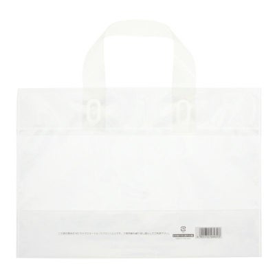 商品の特徴:フィルム材質が厚み0.07mmの手提げポリ袋です。「プラスチック製買物袋有料化制度」の対象外とすることが可能です。本体1枚1枚に厚みのある丈夫な袋であることを明記すると共に、買い物客に有償でお渡しすることも考慮してパッケージとは異なるJANコードを印字してあります。500mlのペットボトル6本がぴったり入ります。中身が見えるのでキャンペーン等にもおすすめです。【印字内容】この袋の厚みは50マイクロメートル(ミクロン)以上です。ご使用後も繰り返し袋としてご利用下さい。