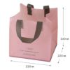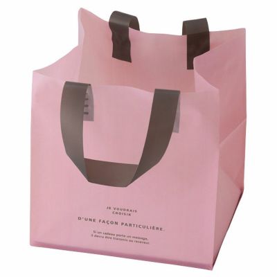 商品の特徴:お花のアレンジやケーキなどの洋菓子、雑貨など幅広い業種の方が使える持ち帰り袋です。中身が透けにくく、オシャレで可愛いピンクカラーの通年使えるベーシックなデザインです。