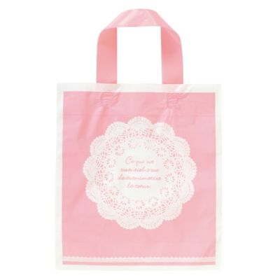 商品の特徴:ピンク色とレース柄で優しい風合いのハンドルバッグです。ベビーからガーリーなものまで、幅広くお使い頂けます。 母の日や女性へのギフトシーンに喜んでいただけます。