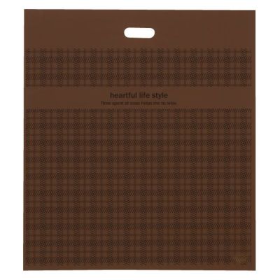 商品の特徴:インテリア雑貨や画材、寝具など、大きなものを入れられるポリ袋です。茶色のベースに薄いチェックの柄が入った、さりげないデザインです。