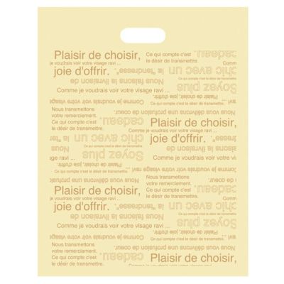 商品の特徴:優しいクリーム色にフランス語が入った、人気のカフェオレシリーズのポリ袋です。底マチがあり、サイズも豊富なので洋菓子店さんから雑貨屋さんまで幅広い業種の方に支持されています。