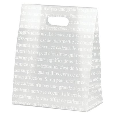 商品の特徴:底板入りの小判穴ハンドルタイプのフロストバッグです。ハンドル付きよりも安価ですが、底板が入っているのでしっかり見え、ギフトのお渡し用としても重宝します。