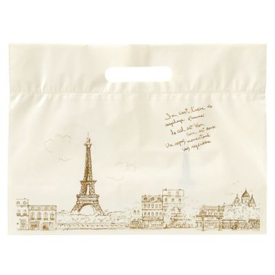 商品の特徴:おしゃれなパリシリーズのリーズナブルなデイリーバッグです。パリの町並みは手書きの味があるタッチで、他の資材ともなじみます。