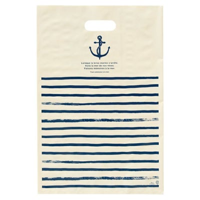 商品の特徴:手描きのボーダーとマリンデザインがさわやかな印象のPEバッグです。男性、女性問わずにお使いいただけます。