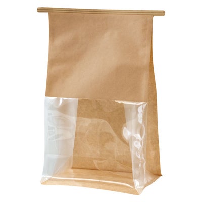 商品の特徴:袋下半分が大きな窓になっている未晒(みざらし)クラフト紙製の無地角底袋です。前面・両側面の3面が透明の窓になっているので、中の商品を活かした魅せるラッピングに。ワイヤー入りの袋口を折り返して止めるだけで簡単にナチュラルなギフトラッピングが完成します。お店のシールやスタンプをあしらうと、オリジナル感がアップしておすすめ。底横マチが広いので商品がたっぷり入ります。食品非対応ですので、食品を入れる際は別途個包装してください。