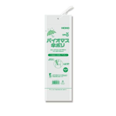 商品の特徴:生物由来の有機資源を原料としたバイオマス成分を10%含んだ傘用のポリ袋です。主原料のサトウキビは、育成時に光合成をして大気中のCO2を吸収するため、石油化学由来の原料と比較すると大幅なCO2の削減に貢献します。●片面印刷【印字内容】この袋はサトウキビ由来のバイオマス成分を10%含んだポリ袋です。「CO2排出量削減」や「石油資源の節約」に貢献しています。本体にミシン目が入っており、簡単に切り離すことができます。 ミシン目以下の高さ:750mm