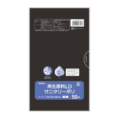 商品の特徴:再生原料を40%配合したトイレコーナー用のポリ袋です。厚みを薄くすることでCo2の排出量を大幅に削減しています。中身が見えにくい黒い材質を使用しています。