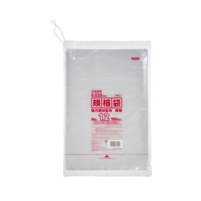 商品の特徴:用途に合わせて多目的に使える吊り下げられるひも付き0.020mm厚、透明タイプの規格袋。12号サイズ。