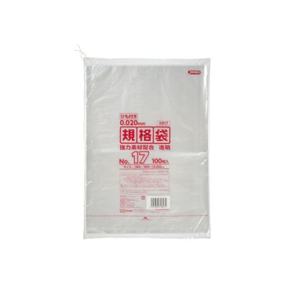 商品の特徴:用途に合わせて多目的に使える吊り下げられるひも付き0.020mm厚、透明タイプの規格袋。17号サイズ。