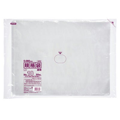 商品の特徴:用途に合わせて多目的に使える特厚、0.080mm厚、透明タイプの規格袋。18号サイズ。