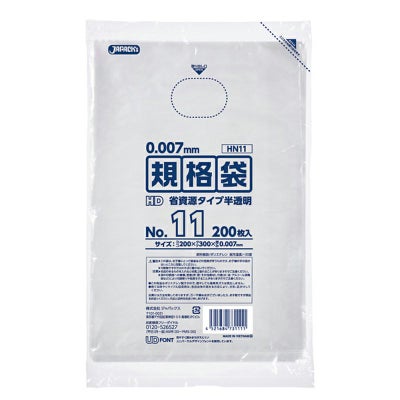 商品の特徴:用途に合わせて多目的に使える0.007mm厚、半透明タイプの規格袋。11号サイズ。