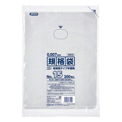 商品の特徴:用途に合わせて多目的に使える0.007mm厚、半透明タイプの規格袋。15号サイズ。