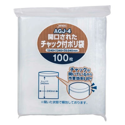 商品の特徴:用途に合わせて使えるチャック付きポリ袋(無地 開口済タイプ)。A4用紙が入るサイズ。