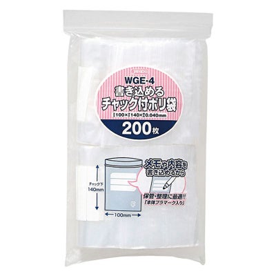 商品の特徴:用途に合わせて使えるチャック付きポリ袋(書き込めるタイプ)。L判写真が入るサイズ。