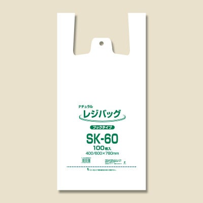 商品の特徴:プレーンな半透明のレジ袋です。フックに掛けて吊り下げ、ミシン目から切り離して使用するハンガータイプ。シリーズ最大サイズ。西日本60号サイズに相当。食品衛生法規格基準適合商品です。