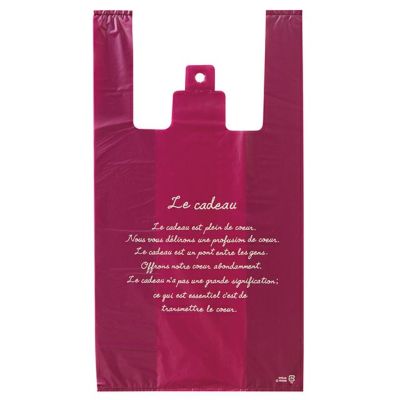 商品の特徴:上品なワインカラーのレジ袋です。大人向けなスタイリッシュなデザインで、しっかり目立つ印象的なレジ袋です。