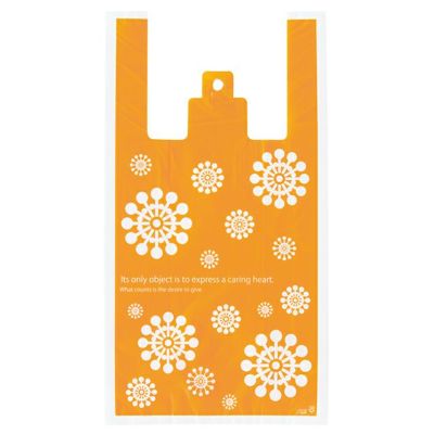 商品の特徴:北欧をイメージしたポップなレジ袋です。温かみのあるオレンジカラーが印象的で、親しみやすいデザインです。