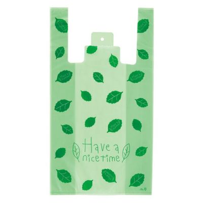 商品の特徴:葉っぱが散らばったさわやかなグリーンのレジ袋です。葉っぱにもメッセージが書かれた遊び心のあるデザインです。お花屋さんややパン屋さんなどにオススメです。