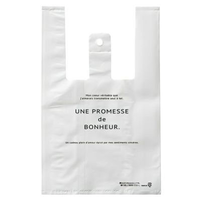 商品の特徴:シンプルで使いやすいボヌールデザインのレジ袋です。 マチが広いので、ケーキ箱やお弁当にもおすすめです。 厚み0.05mm以上の表記付きで無料配布にも対応しており、紙袋より低コスト。従来と変わらない無料提供用の買い物袋としてもおすすめです。
