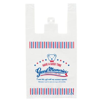 商品の特徴:アメリカのレトロな遊園地を連想させるレジ袋です。ポップな色使いとクマのイラストがかわいい、明るくて楽しい印象のデザインが子どもに喜ばれます。