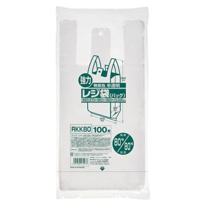 商品の特徴:吊り下げて使えるフック穴付き無着色半透明タイプのレジ袋。東日本80号/西日本80号。