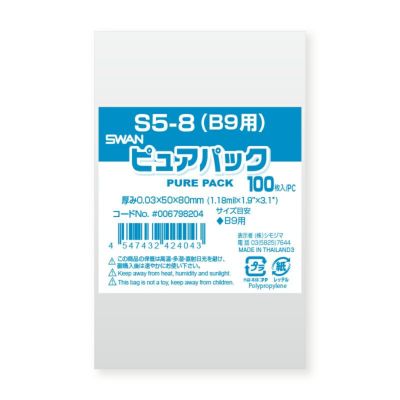 商品の特徴:「ピュアパック」は海外製フィルムを使用したエコノミータイプのOPP袋です。S(サイドシール)シリーズは封緘テープは付いておりません。B9判等を入れるのに適しています。食品衛生法規格基準適合商品です。