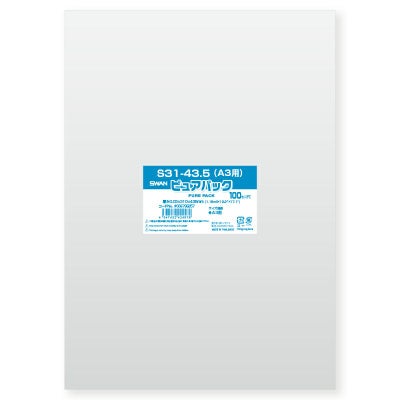 商品の特徴:「ピュアパック」は海外製フィルムを使用したエコノミータイプのOPP袋です。S(サイドシール)シリーズは封緘テープは付いておりません。A3判等を入れるのに適しています。食品衛生法規格基準適合商品です。