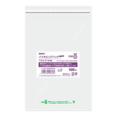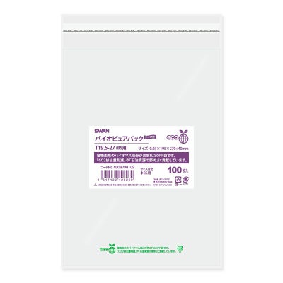 商品の特徴:植物由来のバイオマス成分が含まれたOPP袋です。「CO2排出量削減」や「石油資源の節約」に貢献しています。本体にその旨の印字がされています。Tシリーズは作業性の良いテープ付でワンタッチで封ができます。B5判サイズ等を入れるのに適しています。食品衛生法規格基準適合商品です。