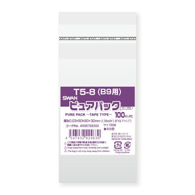 商品の特徴:「ピュアパック」は海外製フィルムを使用したエコノミータイプのOPP袋です。Tシリーズは作業性の良いテープ付でワンタッチで封ができます。B9判等を入れるのに適しています。食品衛生法規格基準適合商品です。