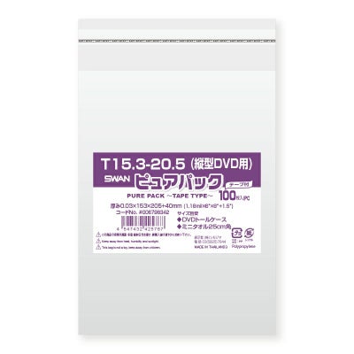 商品の特徴:「ピュアパック」は海外製フィルムを使用したエコノミータイプのOPP袋です。Tシリーズは作業性の良いテープ付でワンタッチで封ができます。DVDトールケース・ミニタオル25cm角等を入れるのに適しています。食品衛生法規格基準適合商品です。