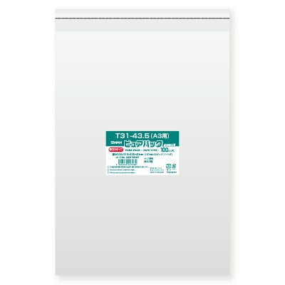 商品の特徴:「ピュアパック」は海外製フィルムを使用したエコノミータイプのOPP袋です。Tシリーズは作業性の良いテープ付でワンタッチで封ができます。A3判等を入れるのに適しています。厚み0.04mmの厚口タイプです。食品衛生法規格基準適合商品です。