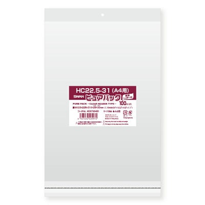 商品の特徴:「ピュアパック」は海外製フィルムを使用したエコノミータイプのOPP袋です。商品をフックに吊り下げて陳列する際に便利な穴の開いたヘッダー付きです。ヘッダーが透明のタイプです。A4判等を入れるのに適しています。食品衛生法規格基準適合商品です。