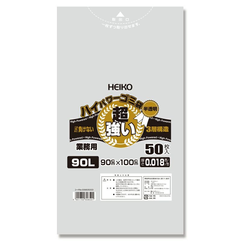 他の画像を見る 【欠品 次回入荷未定】HEIKO ゴミ袋 3層ハイパワーゴミ袋 半透明 90L 300枚 メーカー直送 ケース対応 販売価格 ¥ 8,372 税込 在庫切れ 再入荷お知らせ お気に入りに登録する (0件)