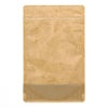 商品の特徴:人気のクラフトタイプのチャック付スタンド袋です。表面が透明で中身が見えるタイプです。底マチ付きで自立します。表面はクラフト紙で内側はCP素材で防湿性・機密性に優れ、保存に最適です。ノッチ(切り込み)付き。乾燥農産加工品、乾燥海産加工品、健康食品、お茶・紅茶などに幅広くご利用いただけます。乾燥剤使用可。脱酸素剤使用不可。