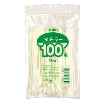 商品の特徴:チャック袋包装されたマドラーで、衛生的に保管・持ち運びが可能な使い捨てスティック。